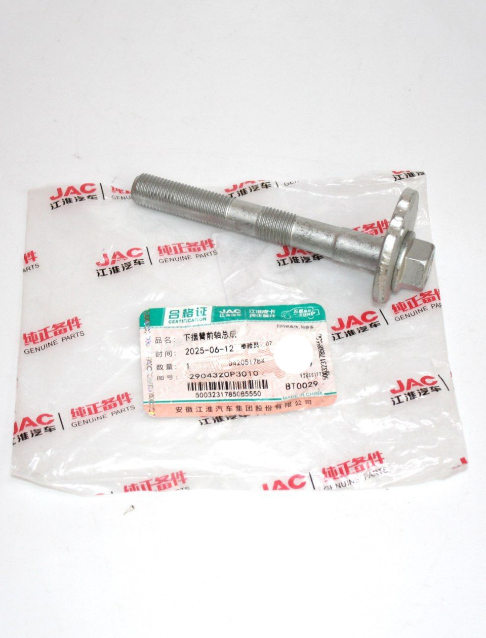 Болт развальный переднего нижнего рычага 2904320P3010 для JAC T6 / Джак Т6