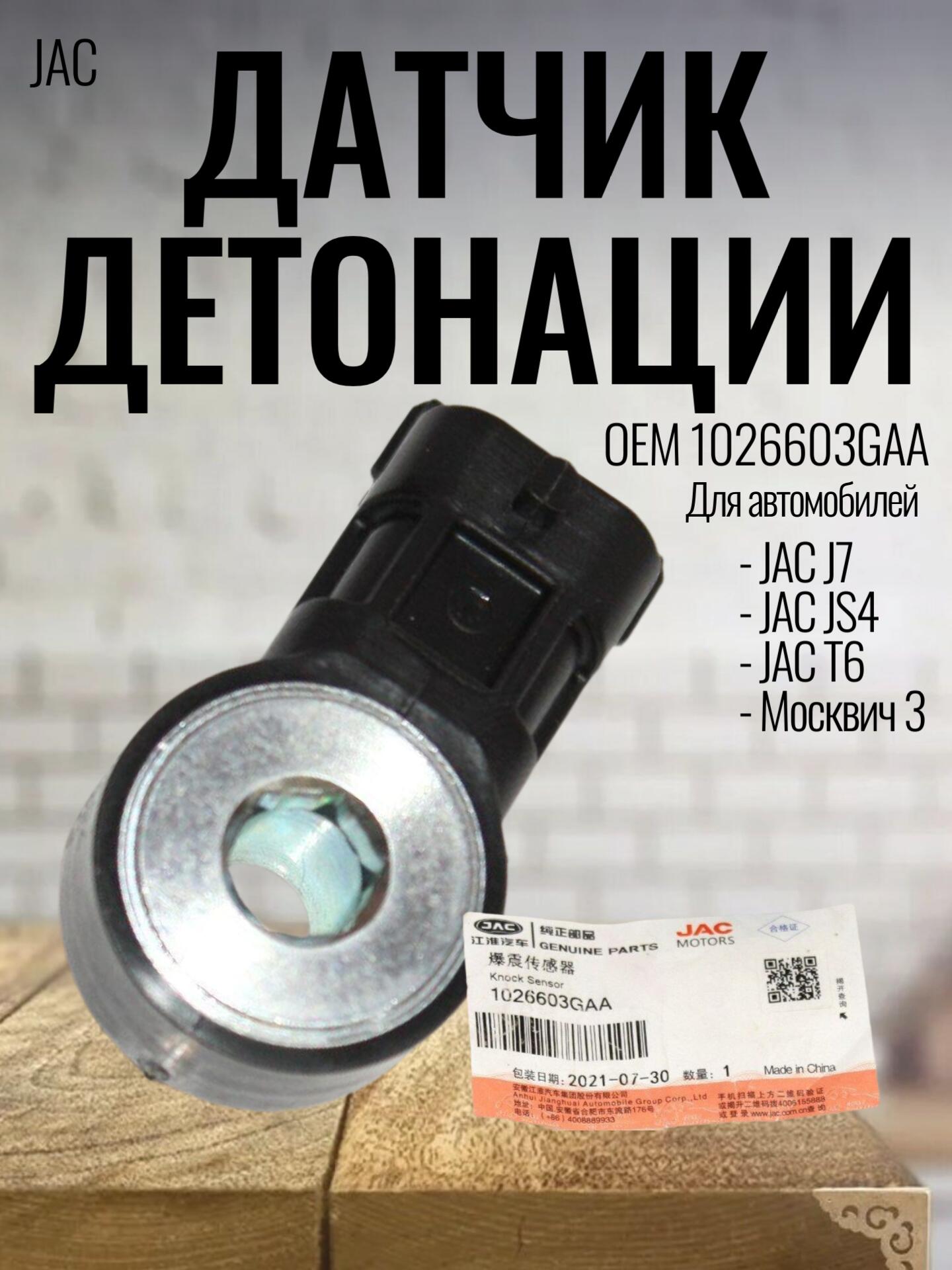 Датчик детонации 1026603GAA для JAC J7, JS4, T6 / Джак Джей 7, Джи Эс 4, Т6 / Москвич-3