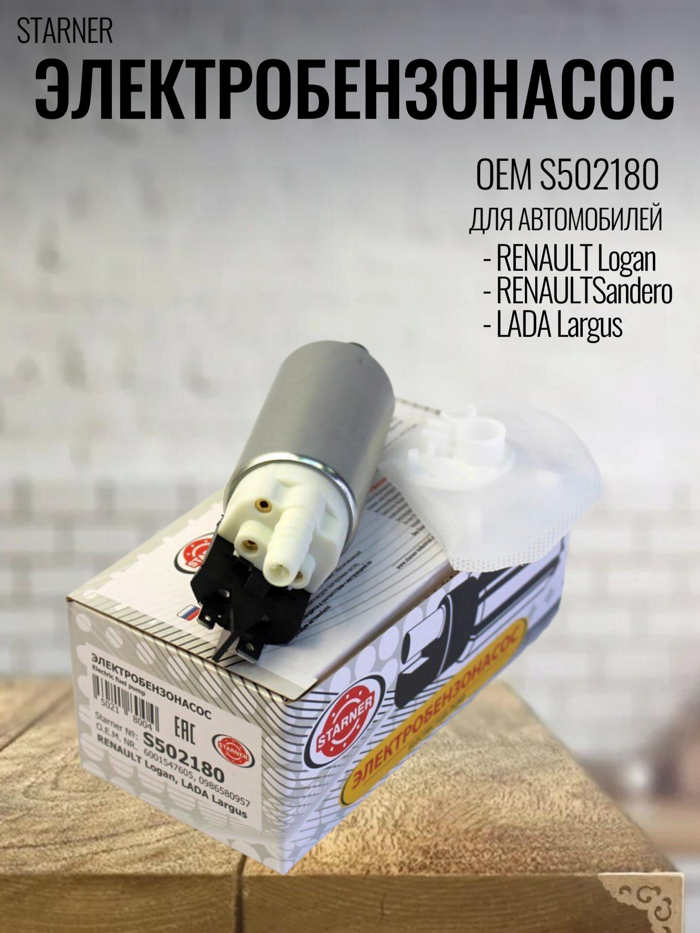 Электробензонасос STARNER S502180 для RENAULT Logan, LADA Largus (с сеткой)