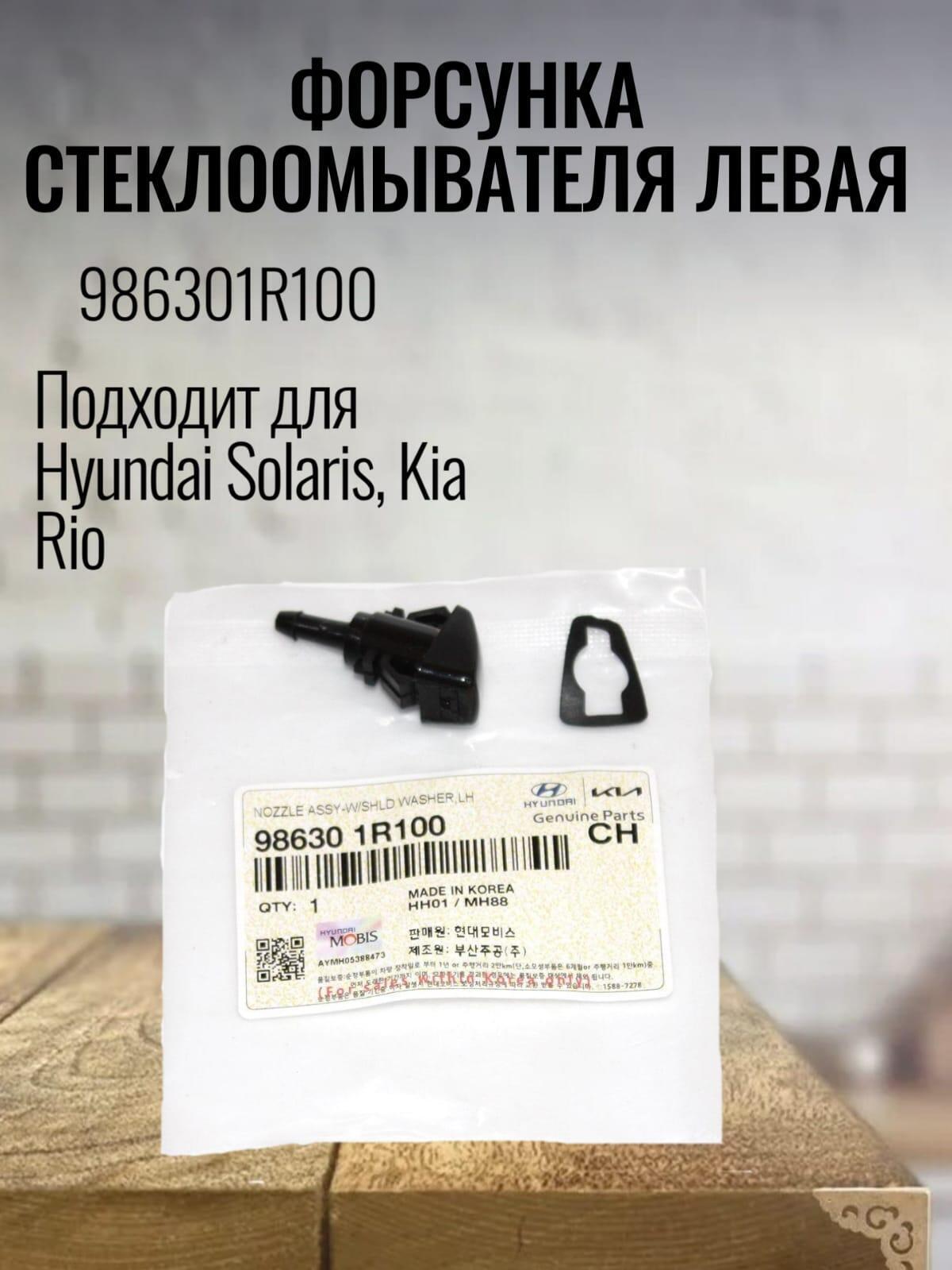 Форсунка стеклоомывателя левая 986301R100 для Hyundai Solaris, Kia Rio / Хендай Солярис, Киа Рио