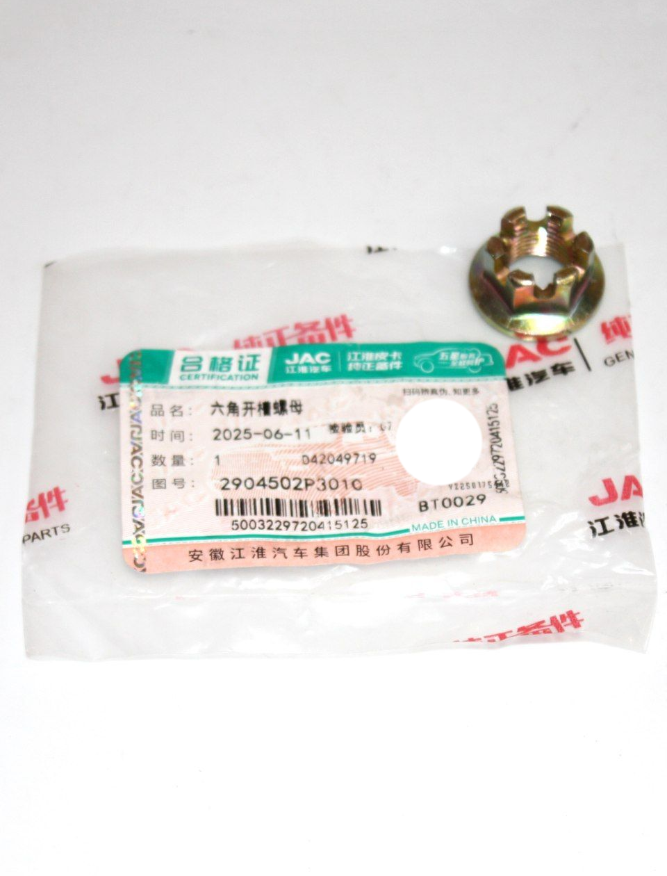 Гайка опоры шаровой 2904502P3010 для JAC T6 / Джак Т6