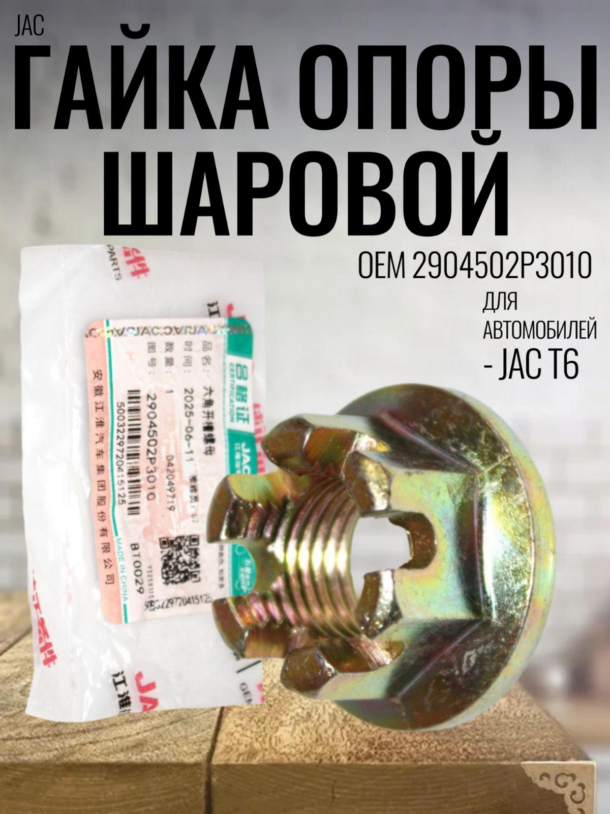 Гайка опоры шаровой JAC (2904502P3010) подходит на следующие марки автомобилей:
