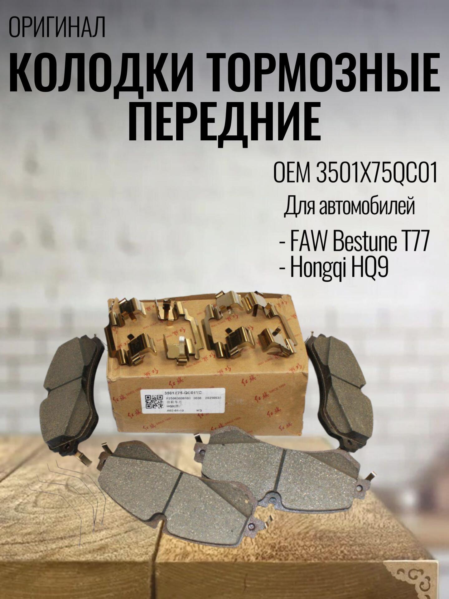 Колодки тормозные передние (ОРИГИНАЛ) 3501X75QC01 для FAW Bestune T77, Hongqi HQ9 / ФАВ Бестюне Т77, Хончи АшКу9