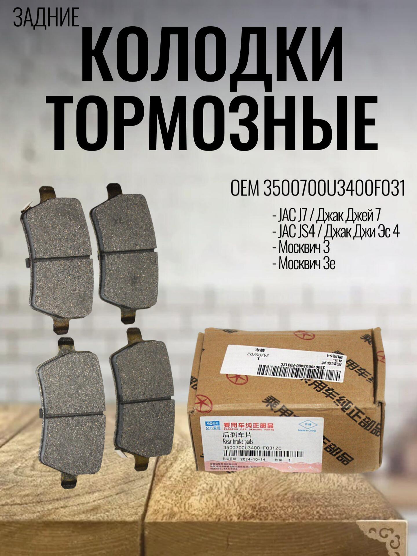 Колодки тормозные задние 3500700U3400F031 для JAC J7, JS4 / Джак Джей 7, Джи Эс 4 / Москвич-3