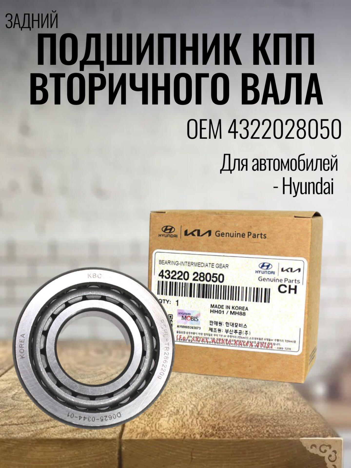 Подшипник КПП вторичного вала задний Hyundai/Kia (4322028050) подходит на следующие марки автомобилей: