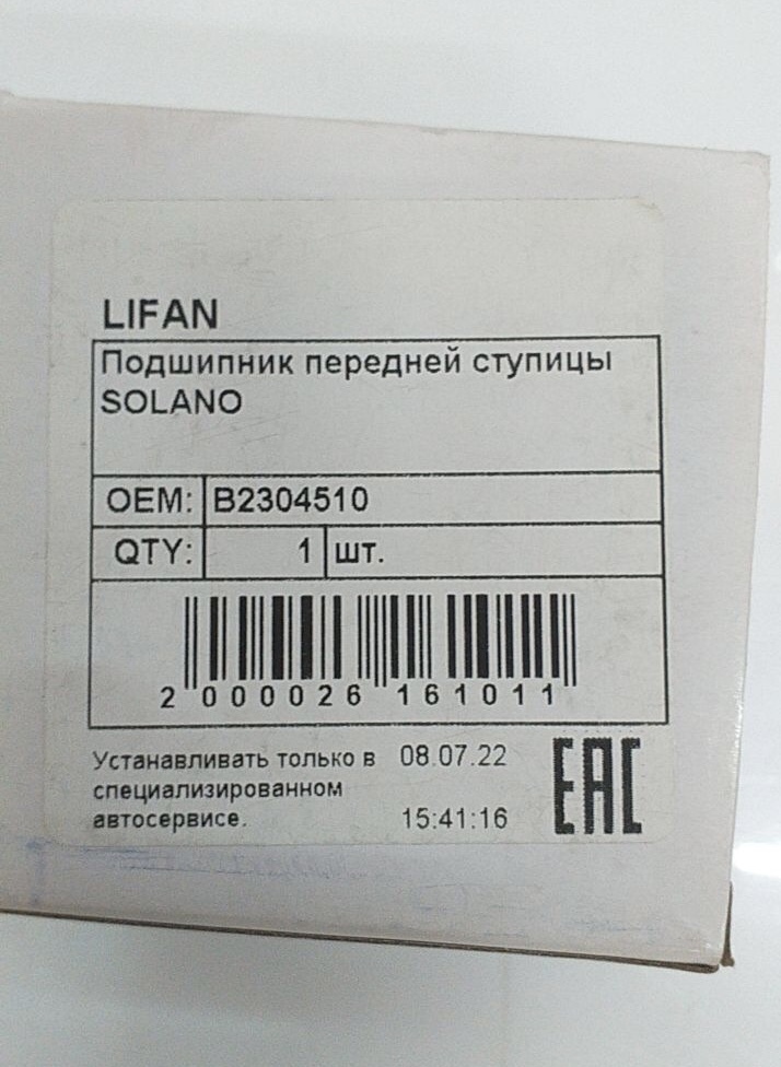 Подшипник передней ступицы LIFAN Solano B2304510