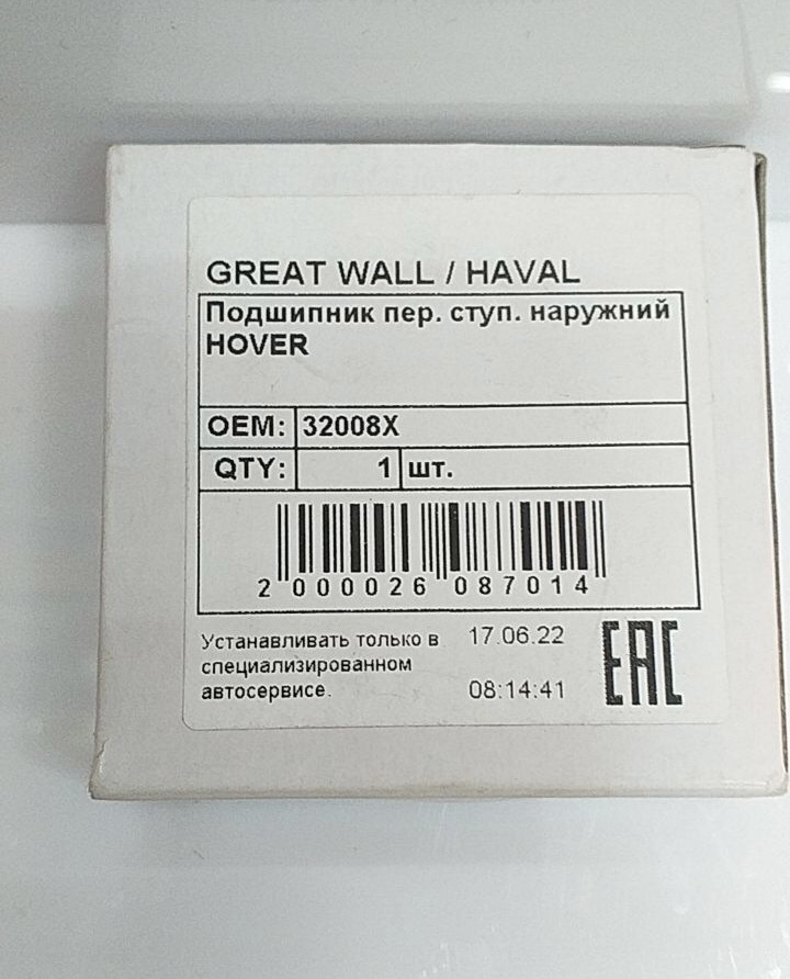 Подшипник передней ступицы наружный GREAT WALL Hover 32008X