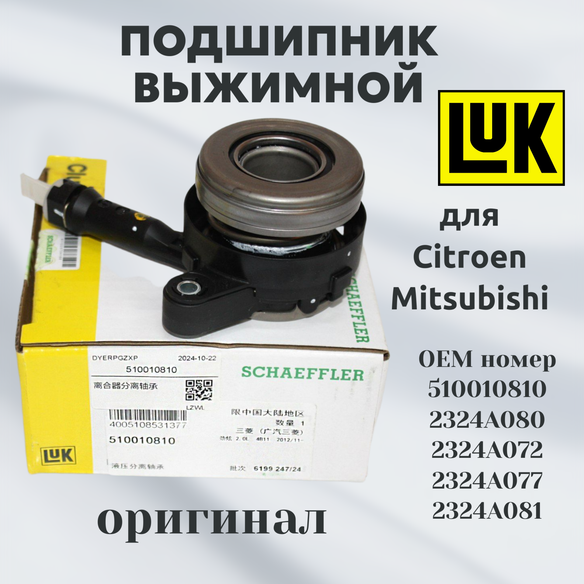Подшипник выжимной LUK 510010810 для Citroen, Mitsubishi, Peugeot / Ситроен, Мицубиси, Пежо