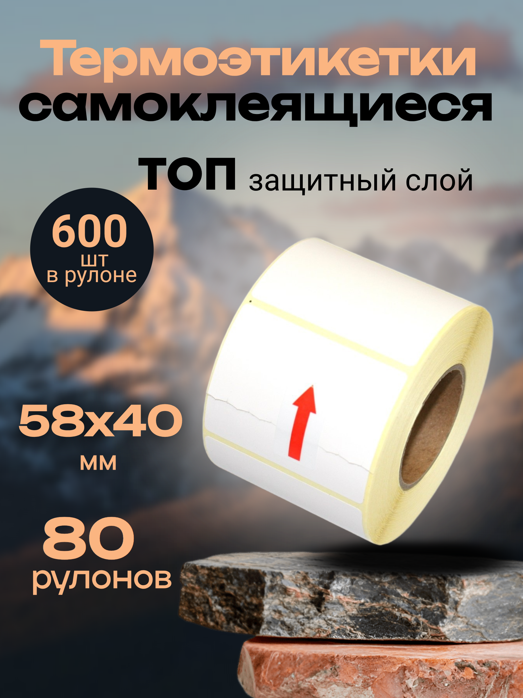 Термоэтикетки ТОП 600 шт в рулоне, размер 58х40 (80 рулонов)